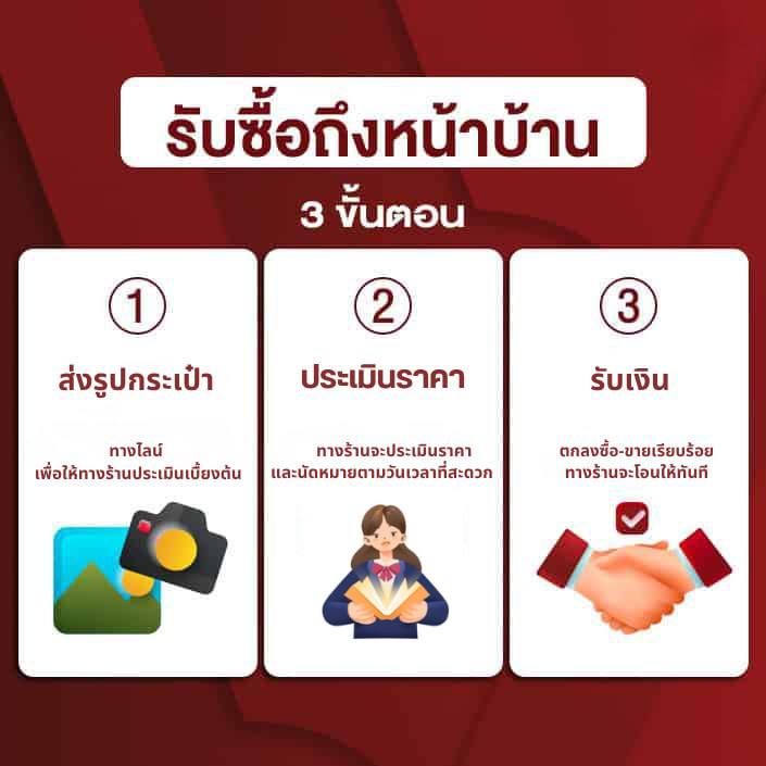 เราคือร้านรับซื้อแบรนด์เนมที่จดทะเบียนอย่างถูกต้อง พร้อมให้บริการอย่างมืออาชีพและโปร่งใส โดยลูกค้าสามารถเลือกใช้บริการได้หลากหลายช่องทางตามความสะดวก ไม่ว่าจะเป็นการนำสินค้ามาขายที่หน้าร้าน บริการรับสินค้าถึงบ้าน หรือจัดส่งผ่านไปรษณีย์ ทั้งหมดนี้ไม่มีค่าใช้จ่ายเพิ่มเติม พร้อมดูแลทุกขั้นตอนให้คุณอย่างดีที่สุด ประเมินราคาโดยมืออาชีพ บริการรับซื้อกระเป๋าแบรนด์เนมมือสองในราคายุติธรรม มีทีมงานผู้เชี่ยวชาญคอยประเมินอย่างโปร่งใสทุกขั้นตอน เปลี่ยนแบรนด์เนมเป็นเงินสดแบบรวดเร็วทันใจ